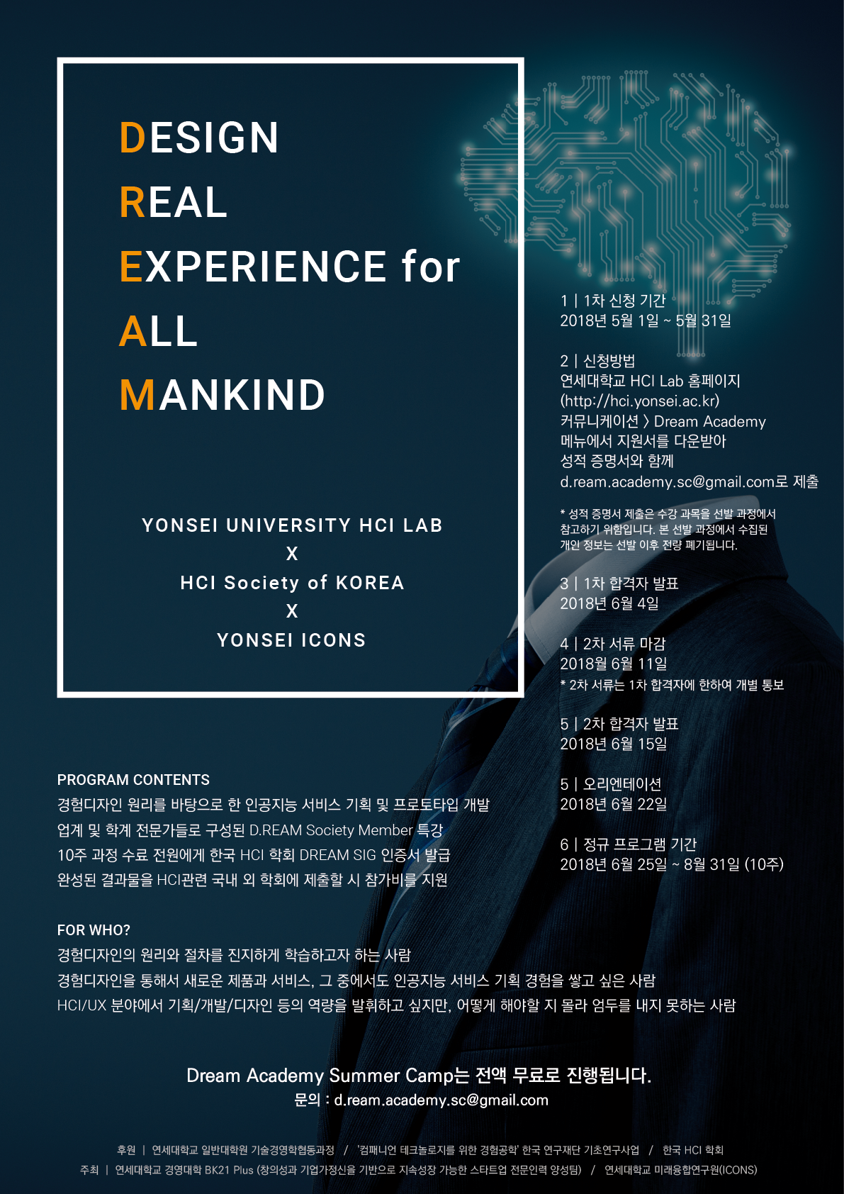 (http://hci.yonsei.ac.kr/html/communication/dreamacademy.html) 에서 다운로드② 1차 합격자 발표 : 2018년 6월 4일